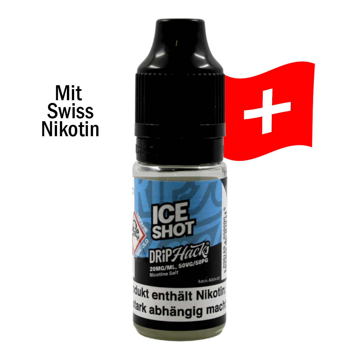 Für jede Art von Nikotinzusatz, die NicShots und NicSaltShots von Drip Hacks. Mit 20mg/ml Nikotin bieten sie die höchste, zulässige Konzentration und du hast die freie Wahl, welches Nikotin du verwenden willst. Das NicSalt bietet weniger «kratzen» im Hals, so dass man in MTL Geräten eine höhere Konzentration verwenden kann. Das klassische Nikotin ist ja schon seit vielen Jahren bekannt. Besonders hervorheben muss man, dass es sich um Schweizer Nikotin handelt! Ausserdem stehen dir noch IceShots zur Verfügung sowie das reine WS23 (Koolada).